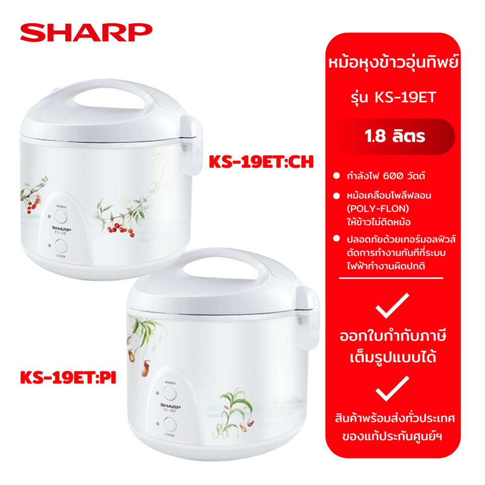#SHARP หม้อหุงข้าวชาร์ป อุ่นทิพย์ KS-19ET 1.8L (หม้อในเคลือบ) (APP-000045)