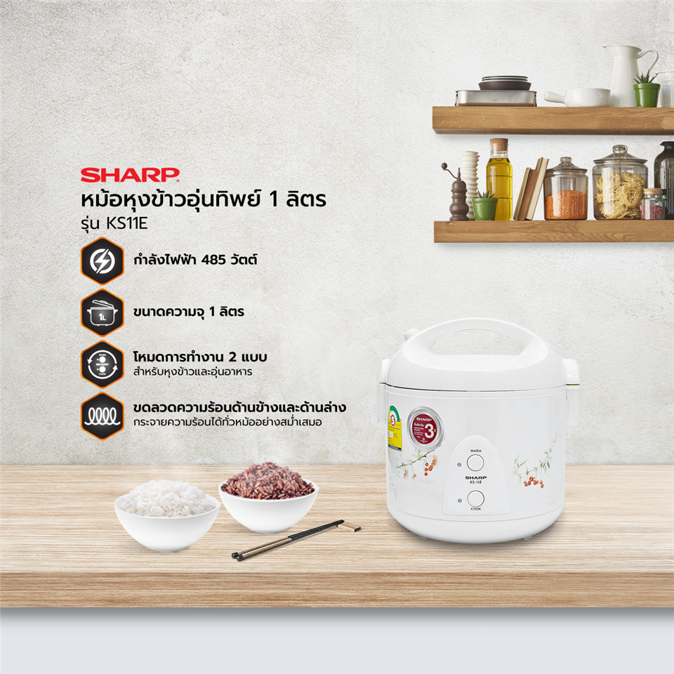 #SHARP หม้อหุงข้าวชาร์ป อุ่นทิพย์ KS-11E 1.0L (ELE-002214)
