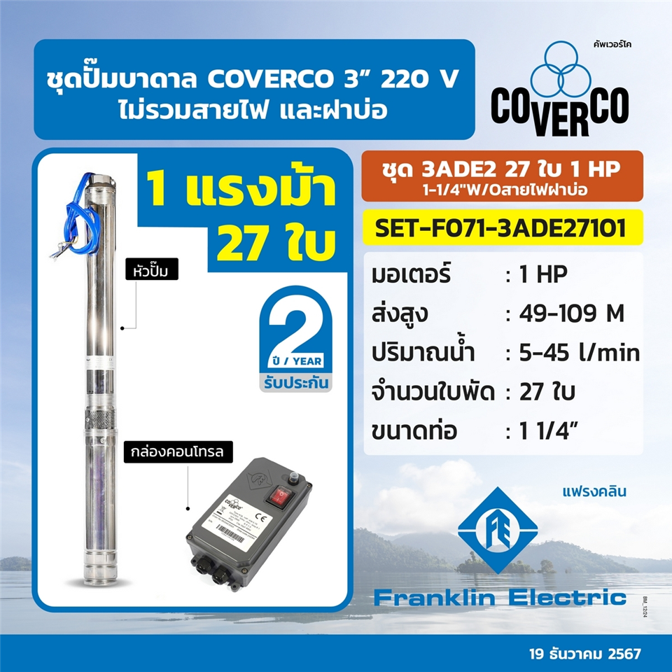 #FRANKLIN SET ปั๊มบาดาล 3ADE2-27/10 1HP 1 1/4นิ้ว (F071-3ADE27101)