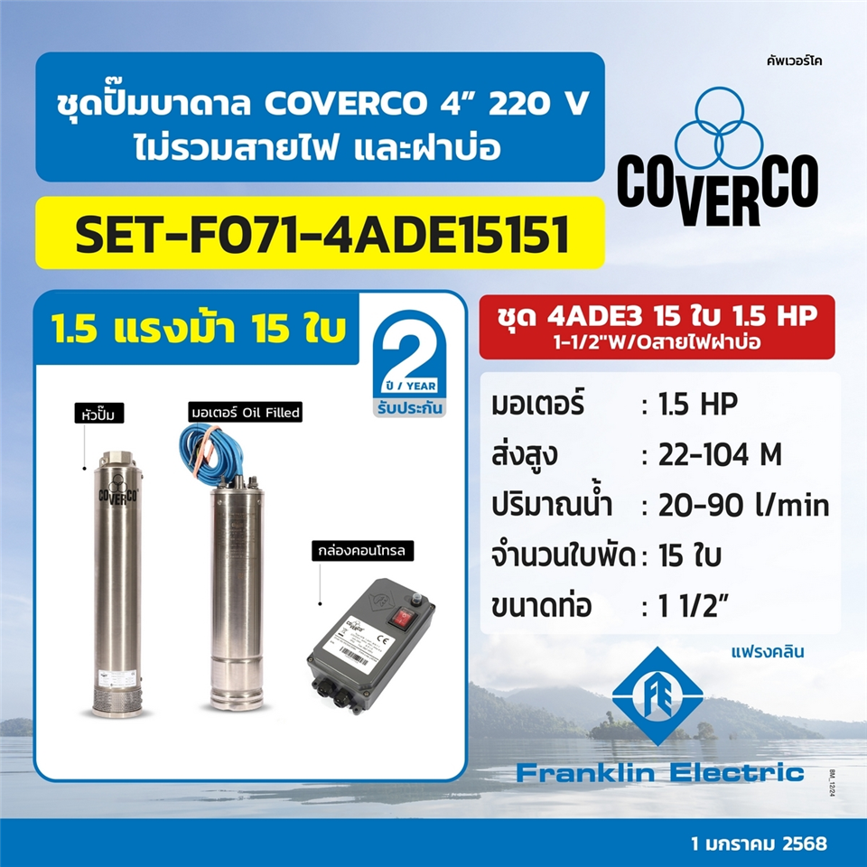 #FRANKLIN SET ปั๊มบาดาล 4ADE6-14/20 2HP 2นิ้ว (F071-4ADE14201)