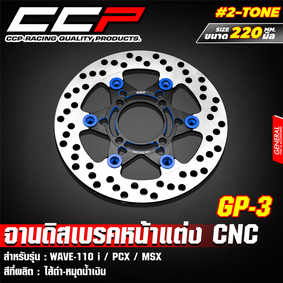 #CCP จานดิสเบรคหน้า #GP3 MSX,WAVE110i,PCX ดำ-หมุดน้ำเงิน (JDB-GP3-3)