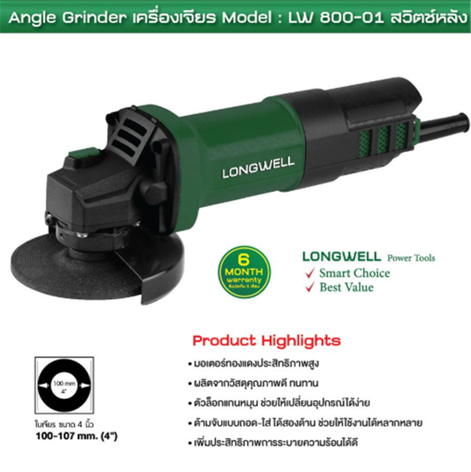 #LONGWELL เครื่องเจียร์ 4นิ้ว 800W-01 สวิตซ์หลัง (LONG-000036)