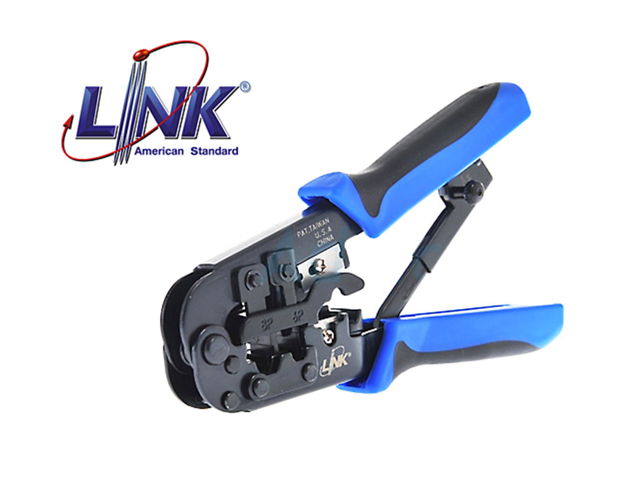 Link คีมเข้าหัวแลนตัวผู้ RJ-45 RJ-11 รุ่น TL-1103 R RJ45, RJ11, 4 POS Hand set CRIMP TOOL นิวส์คีมด้ามฟ้า-ดำ (US-8003 เดิม) *คุณสมบัติ - คีมเข้าหัวสายแลน RJ-45 สายโทรศัพท์ RJ-11 (ใช้ย้ำสายโทรศัพท์ 6P4C / สายแลน RJ45 / มีใบมีดปอกสายในตัว) - สินค้าเกรด A รั